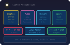 Based on the solid experience of trainers during their various projects, this Embedded Linux Systems Architecture training session helps participants and architects in the design of their embedded Linux solutions, from the bootloader to the graphics library.